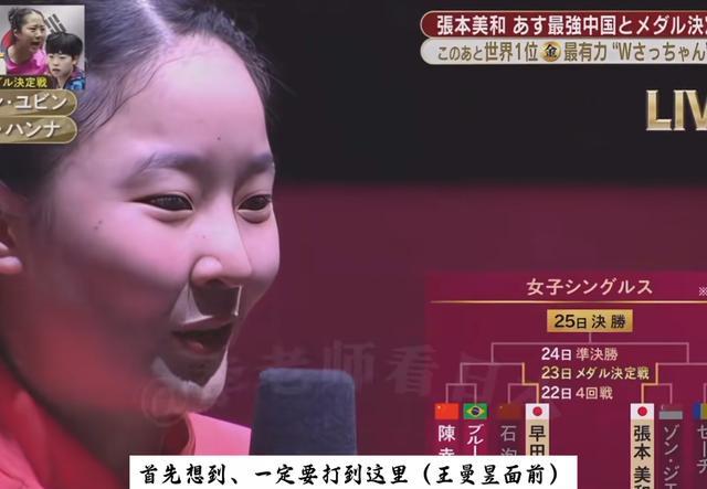 张本美和还在采访中放话,自己在此之前就想着一定要打到王曼昱面前,必须要获得奖牌,从她的状态来看,她也很期待和王曼昱再次对上。
