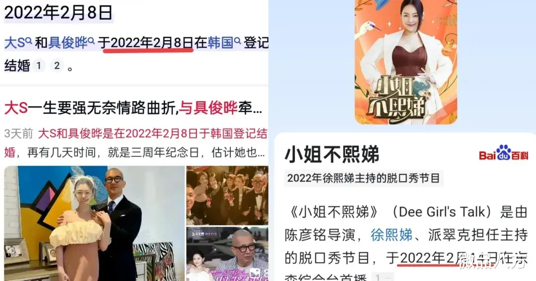 时间的巧合总是格外令人心酸。大S离世后的头七恰逢2月8日,这天正是她与具俊晔的三周年结婚纪念日。紧接着2月14日,又是《小姐不熙娣》开播三周年。这一连串的日子,对小S来说都变成了撕心裂肺的纪念。