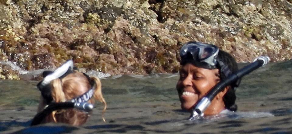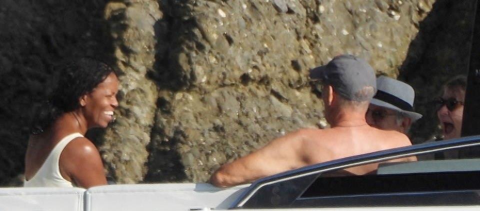 米歇尔是独自一人,并没有丈夫贝拉克·奥巴马陪同,而另两位男士则都带上了各自的太太,大家一起坐上小船前往海边,还是挺惬意的。