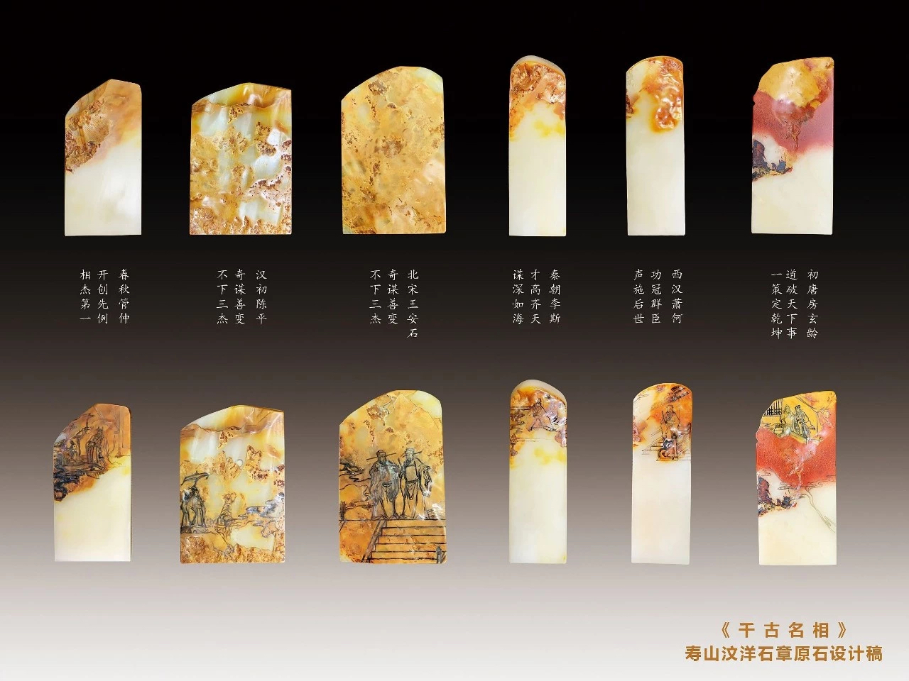在徐桂鸣的代表作《千古名相》、《秦皇汉武》、《古圣先贤·传世家训》等作品中,我们可以看到他将历代帝王将相、圣贤名士的文化故事融入寿山石雕的独特处理方式。这些作品不仅仅是历史人物的简单再现,更是通过石雕艺术语言对历史文化进行的深度解读与重构。