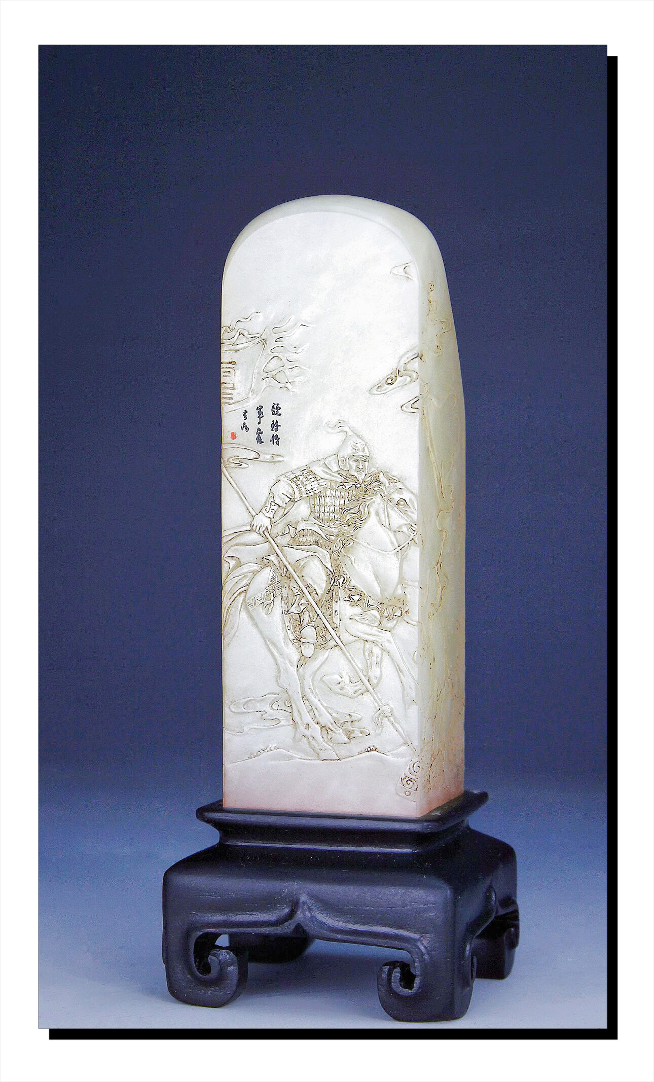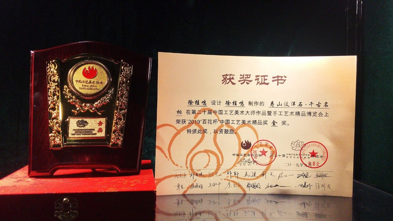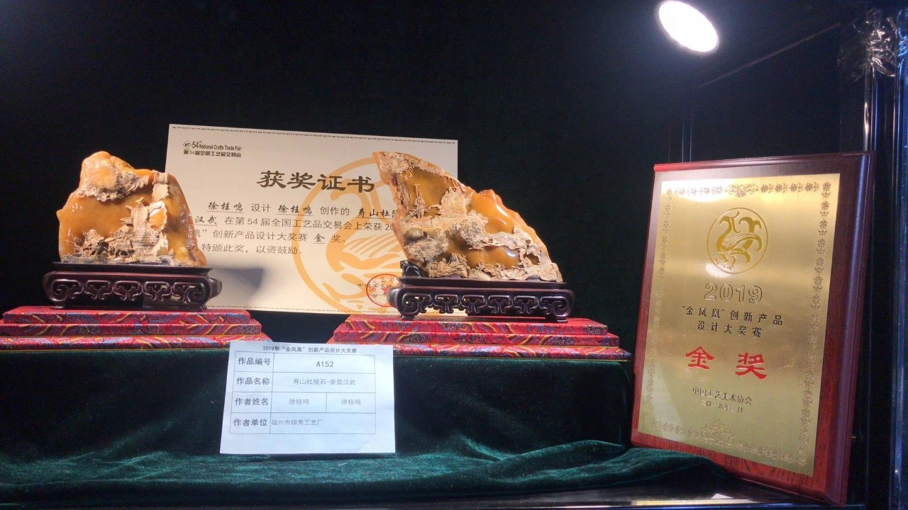 徐桂鸣设计制作的寿山汶洋石-《千古名相》在第二十届中国工艺美术大师作品暨手工艺术精品博览会上荣获'2019“百花杯”中国工艺美术精品奖金奖。