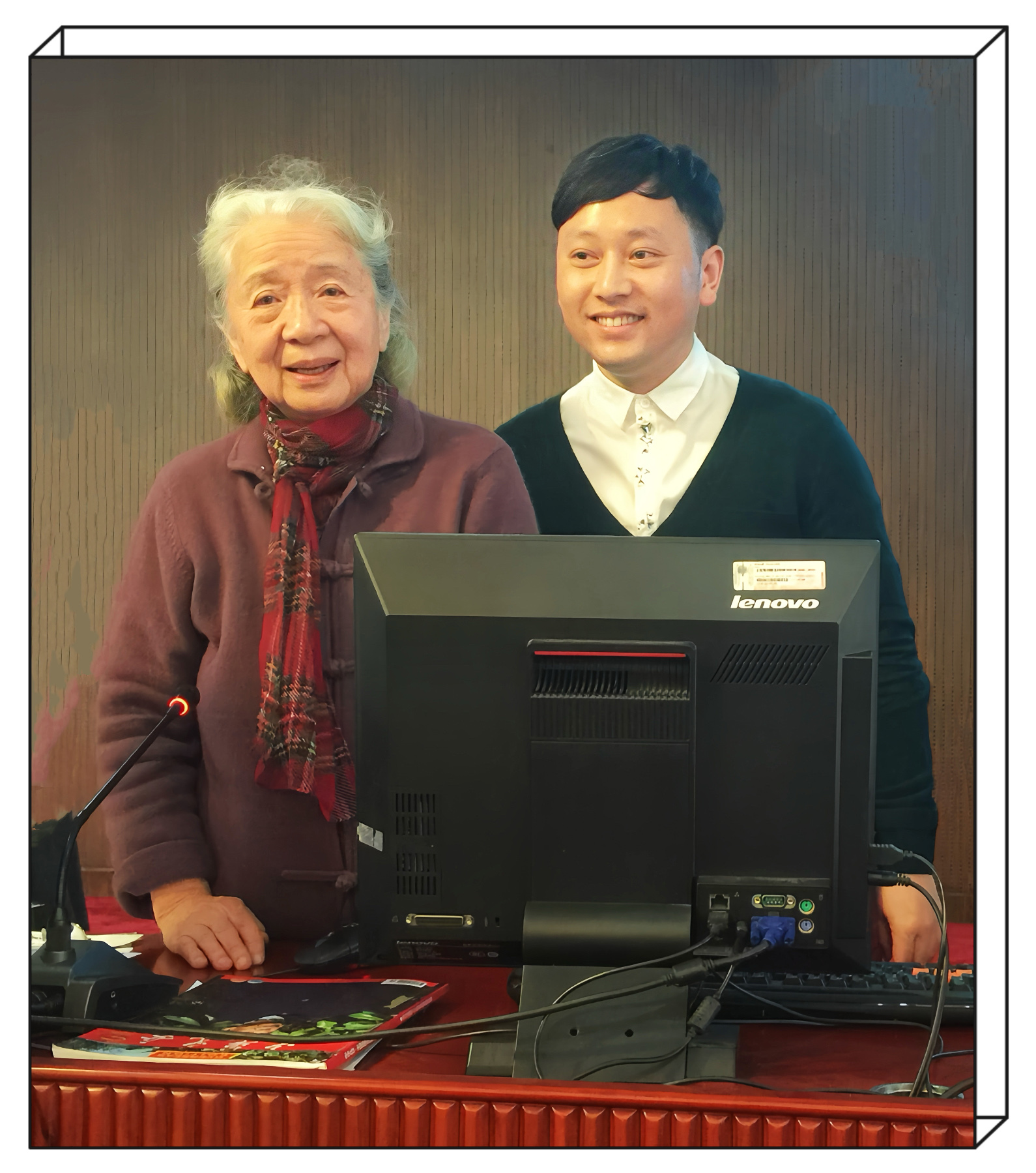 与常沙娜先生合影(中国工艺美术家、敦煌图案学专家、 教育家、设计家,新中国形象设计亲历者、原中央工艺美术学院院长,中国工艺美术学会名誉会长。