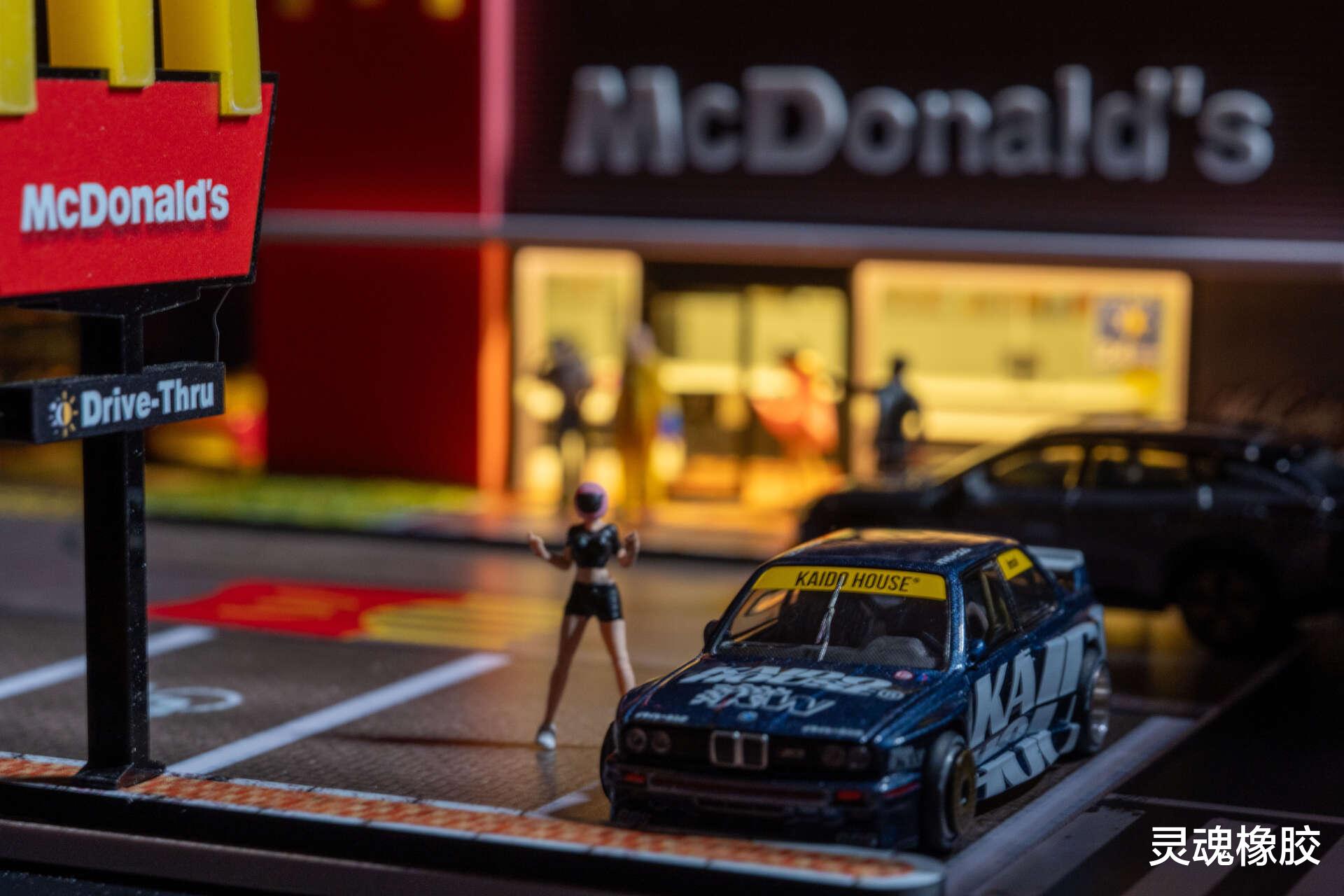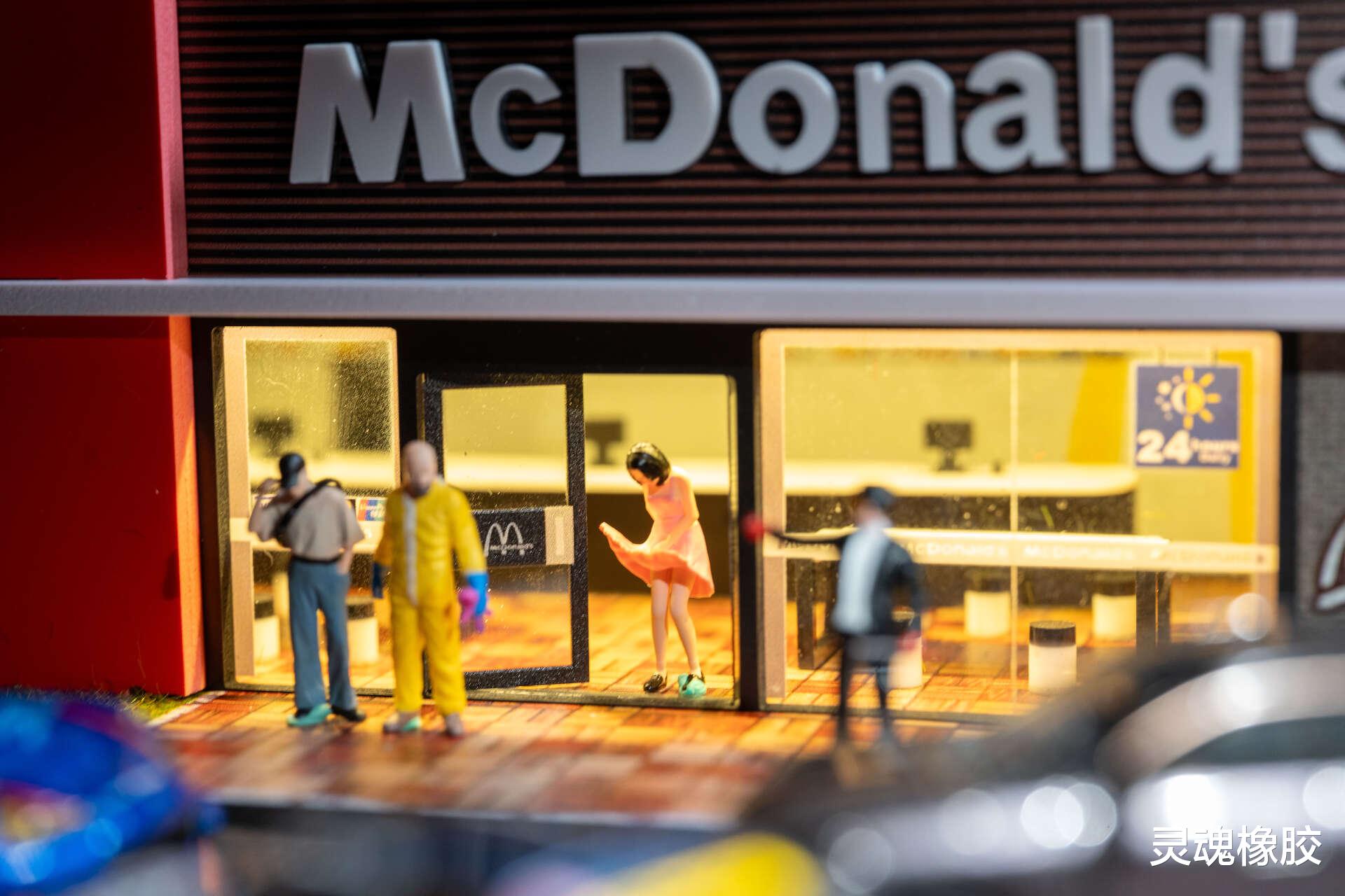 GFANS 1:64场景模型 麦当劳桌搭其实并不一定要是数码产品,最近橡胶哥还略有些沉迷微缩场景,起因是我前一阵又跳了小比例汽车模型的坑,我真的是一个坑接一个坑的跳!哈哈哈,有这个场景吧,你还可以尝试一下拍拍微距照片,小比例人偶+小比例的汽车模型,在微缩场景里就好像要有故事发生一样,晚上看着麦当劳里的暖色灯光也是很治愈的!