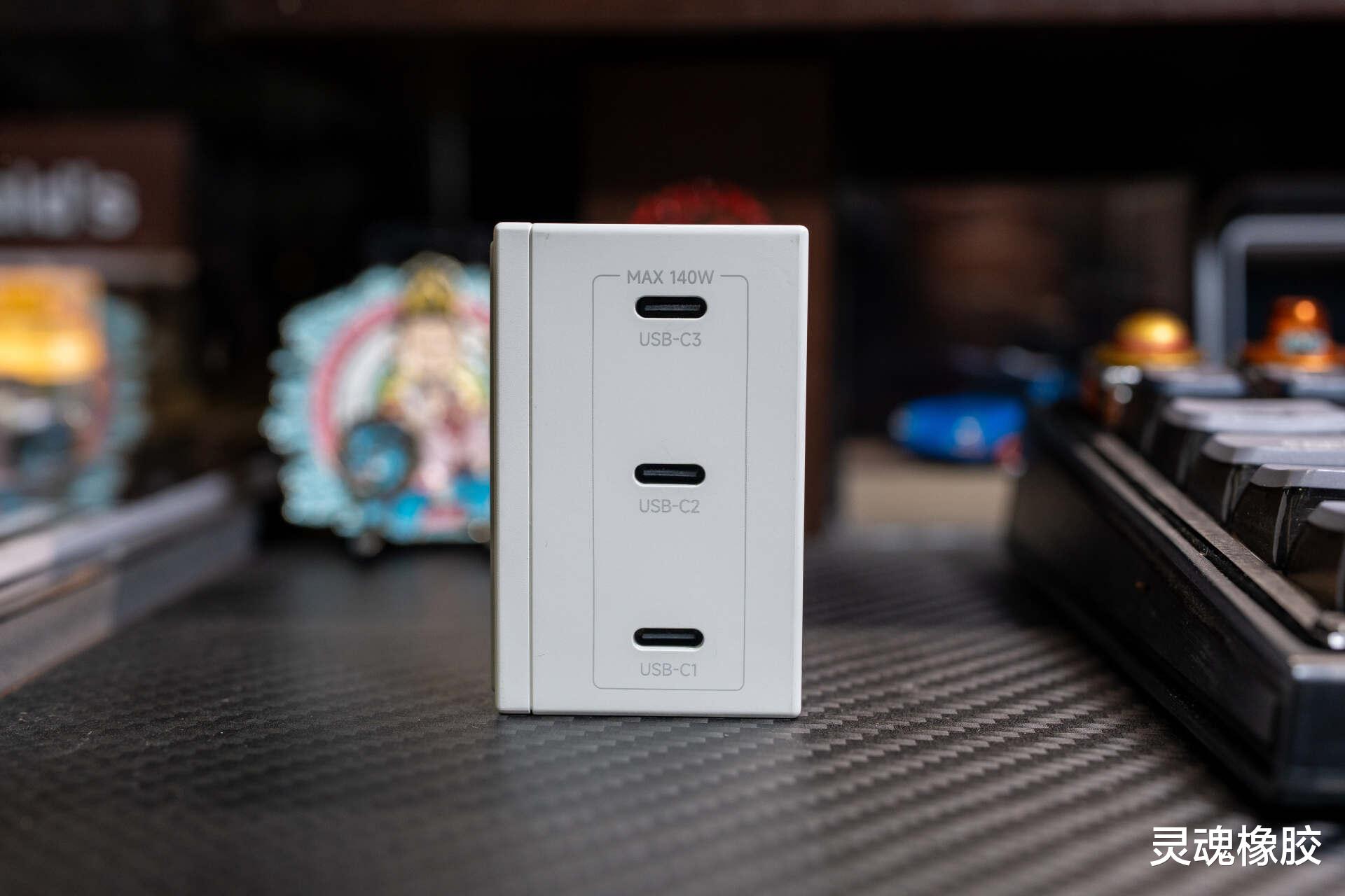 这款充电头的插脚采用了可折叠式的设计,日常携带非常方便,直接放到包包里就好,140W的超大功率三口输出,一个充电头就可以满足笔记本,手机以及耳机等不同的数码产品的充电需求,十分方便,出门旅游、出差再也不用背好几个充电头了!