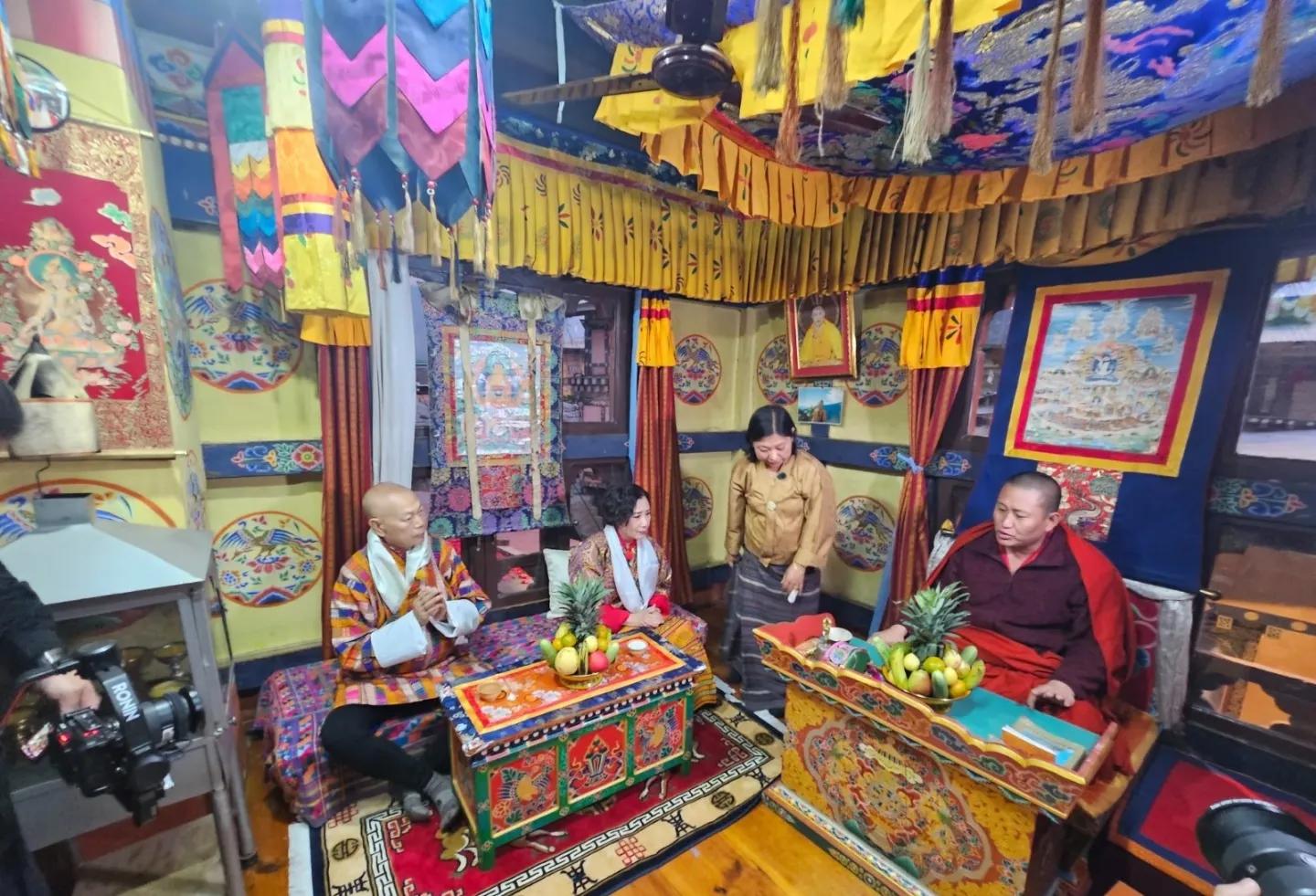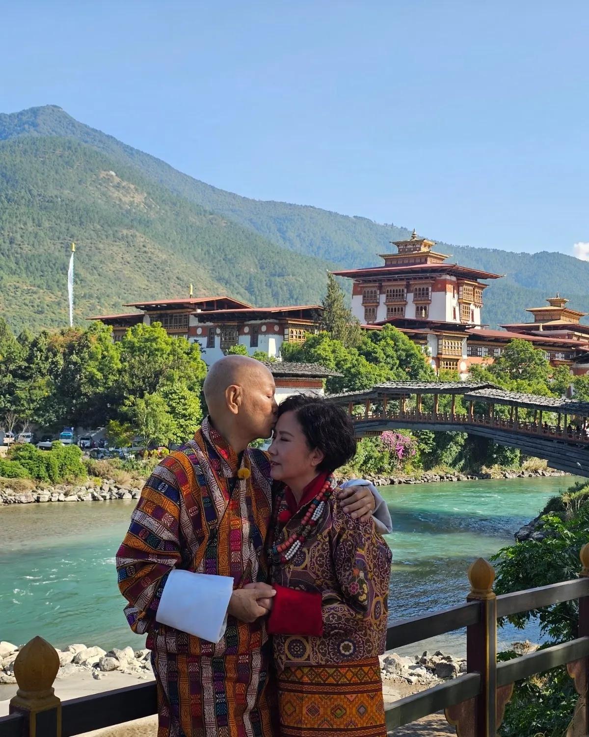 近日,汪明荃和丈夫罗家英一同前往不丹拍摄综艺节目《带阿姐看世界》,俩人决定在当地补拍婚纱照,俩人结婚16年来终于拍上了婚纱照。