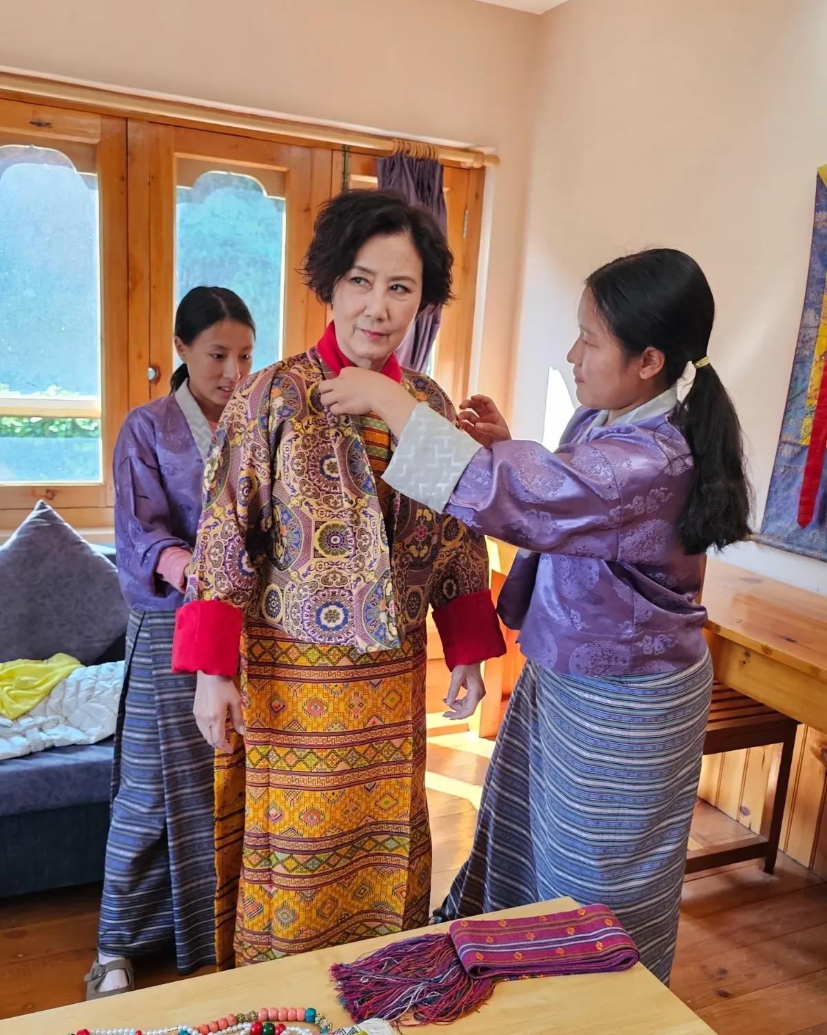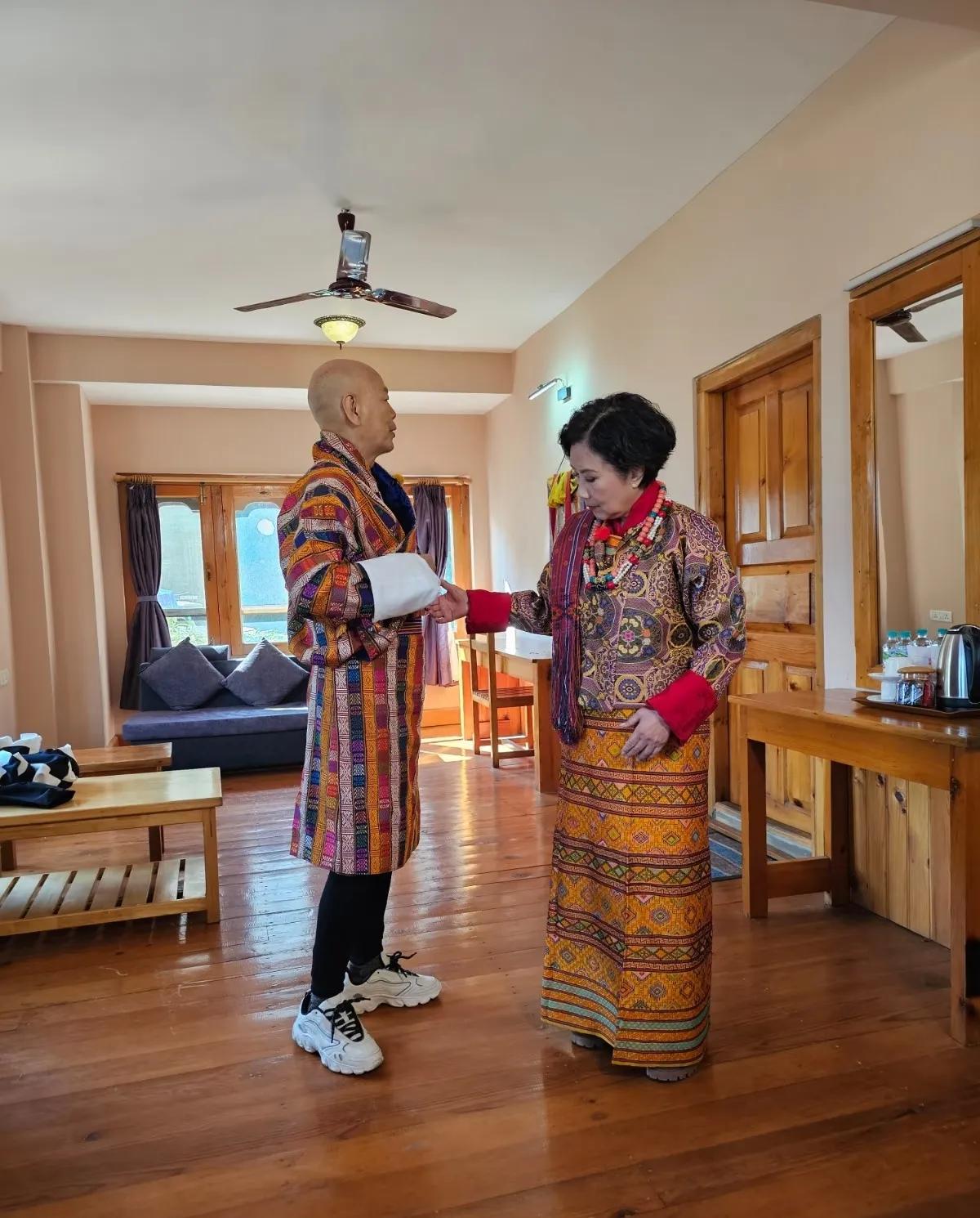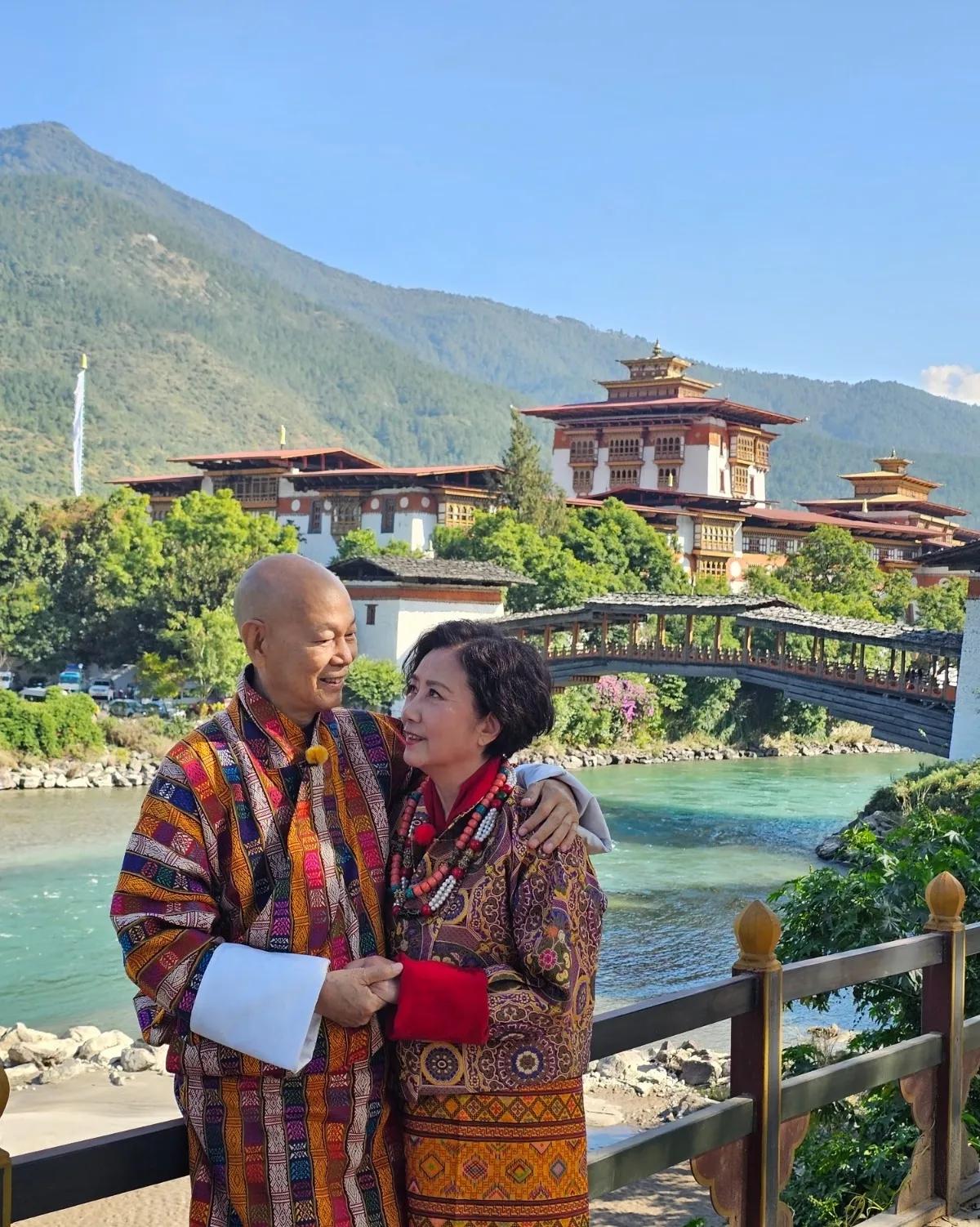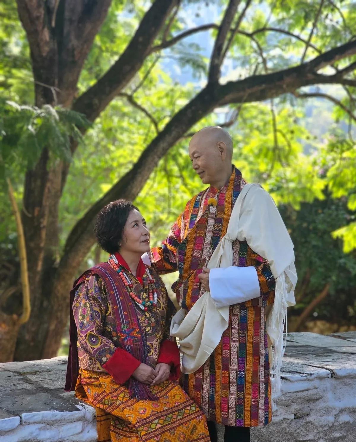 汪明荃和罗家英身穿不丹当地传统民族服饰拍摄婚纱照,简单的一套婚纱照却藏这深深的爱意,汪明荃和罗家英相爱36年(拍拖20年结婚16年),在奔80岁之前补齐了这个遗憾。