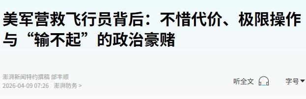 3.2026-04-09《美军营救飞行员背后:不惜代价、极限操作与“输不起”的政治豪赌》-澎湃新闻