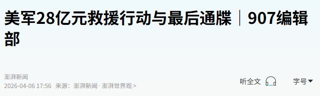 2.2026-04-06《美军28亿元救援行动与最后通牒|907编辑部》-澎湃新闻