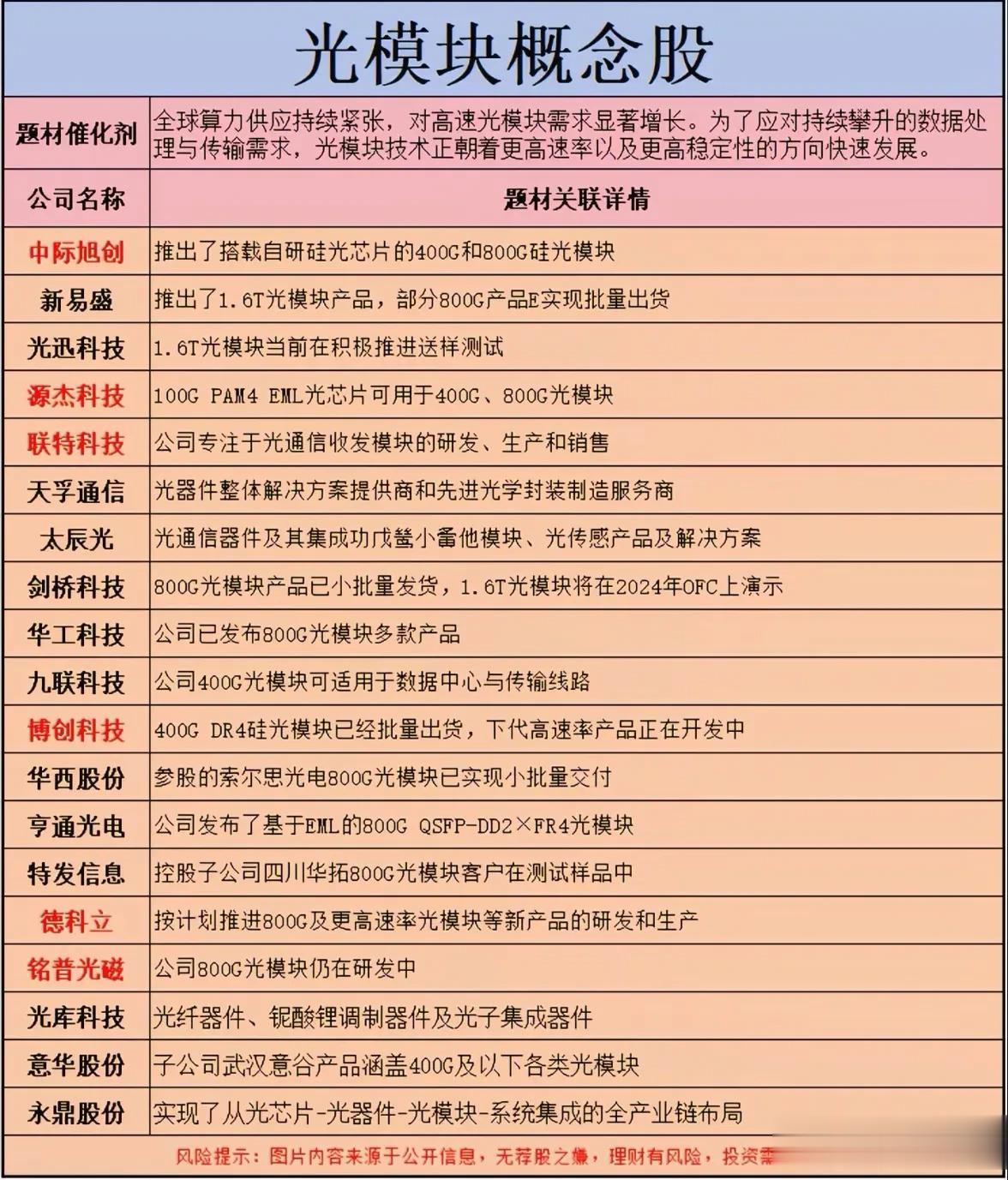 关键金属+光刻胶+水产养殖+贵金属+算力+光模块概念