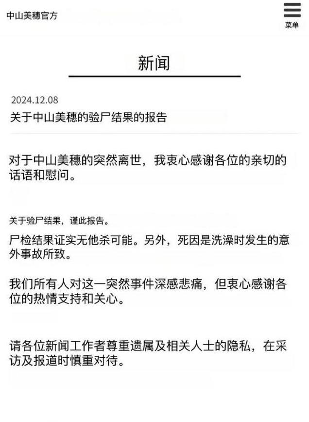 随后,中山美穗的死因也被公布,让所有人没想到的是,她竟然是在洗澡时发生的意外……