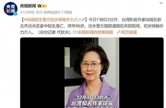 2024 年 12 月 4 日,知名作家琼瑶在台湾新北市淡水区的家中离世,享年 86 岁。