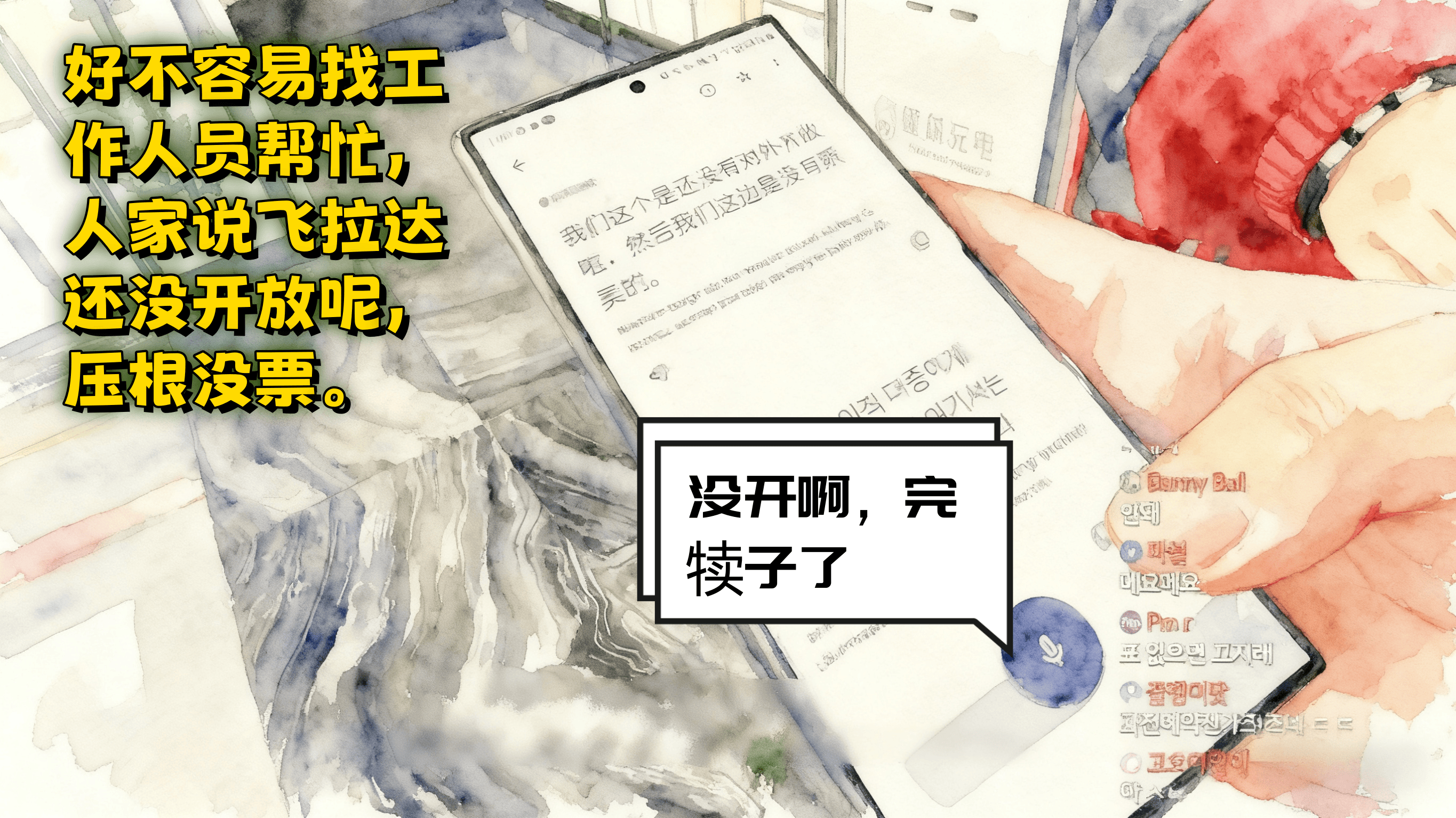 好不容易找工作人员帮忙,人家说飞拉达还没开放呢,压根没票。