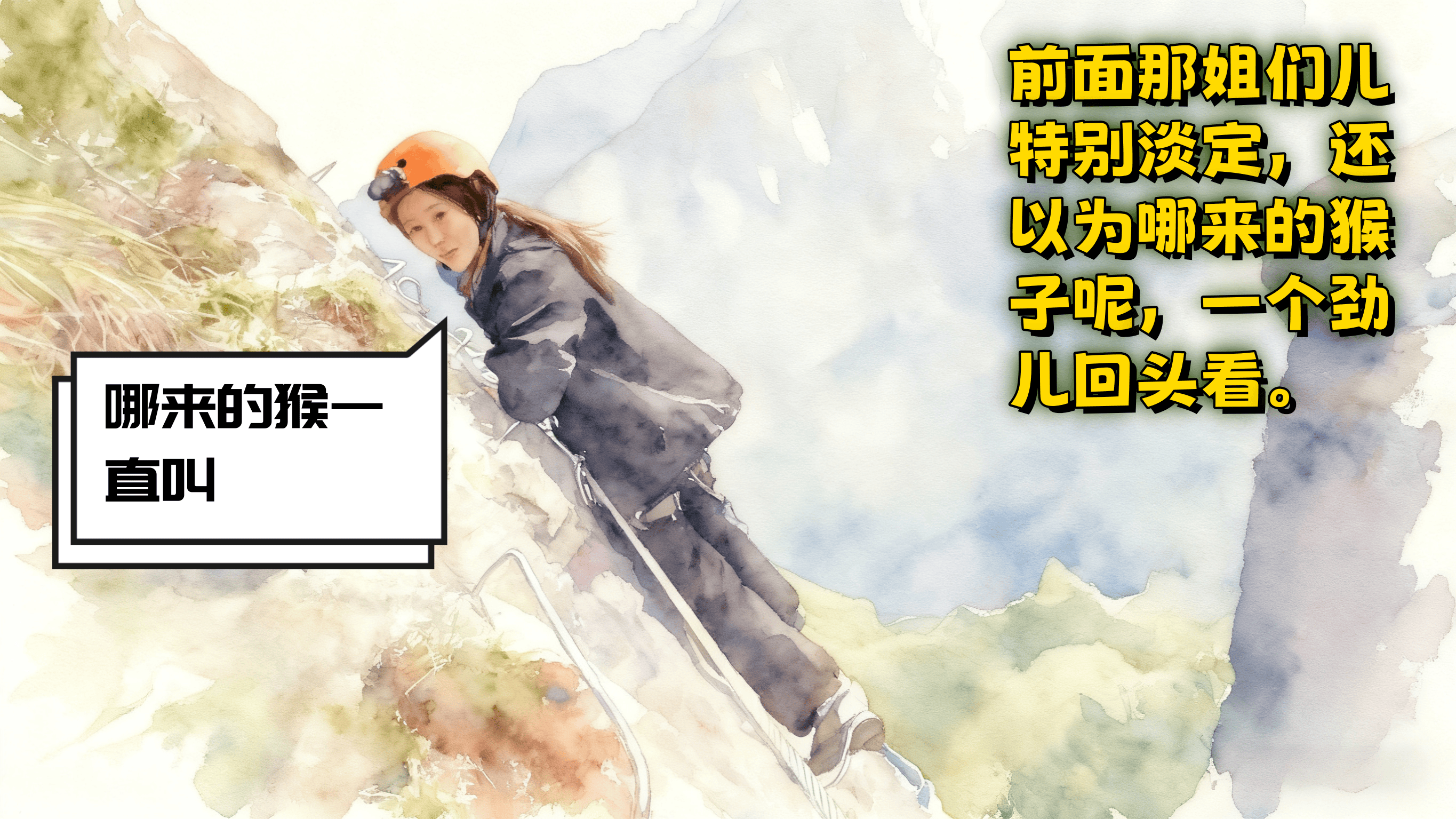 前面那姐们儿特别淡定,还以为哪来的猴子呢,一个劲儿回头看。