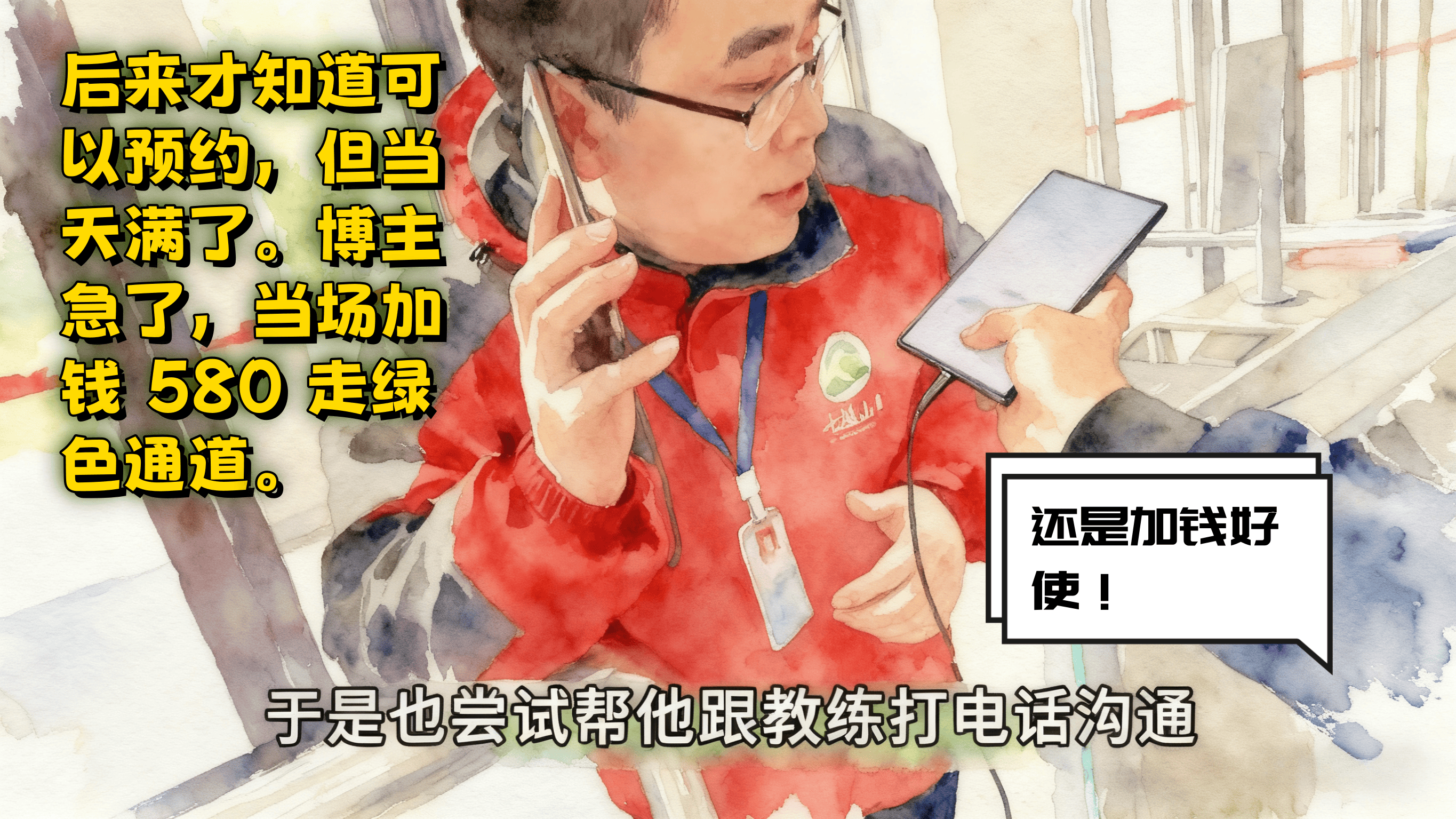 后来才知道可以预约,但当天满了。博主急了,当场加钱 580 走绿色通道。