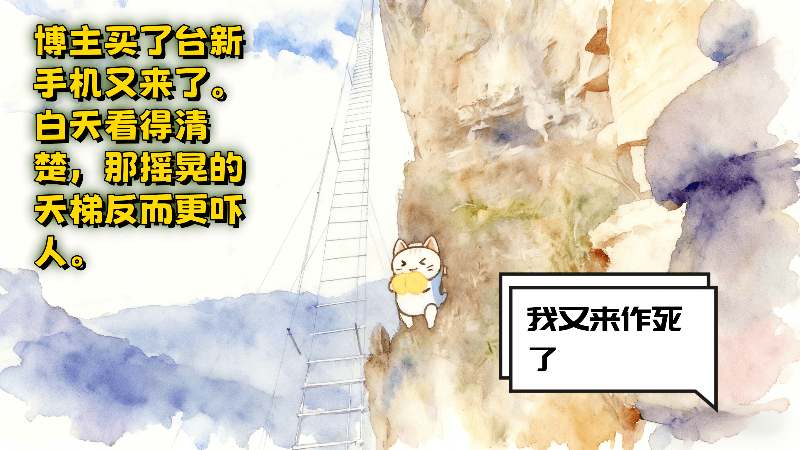 博主买了台新手机又来了。白天看得清楚,那摇晃的天梯反而更吓人。