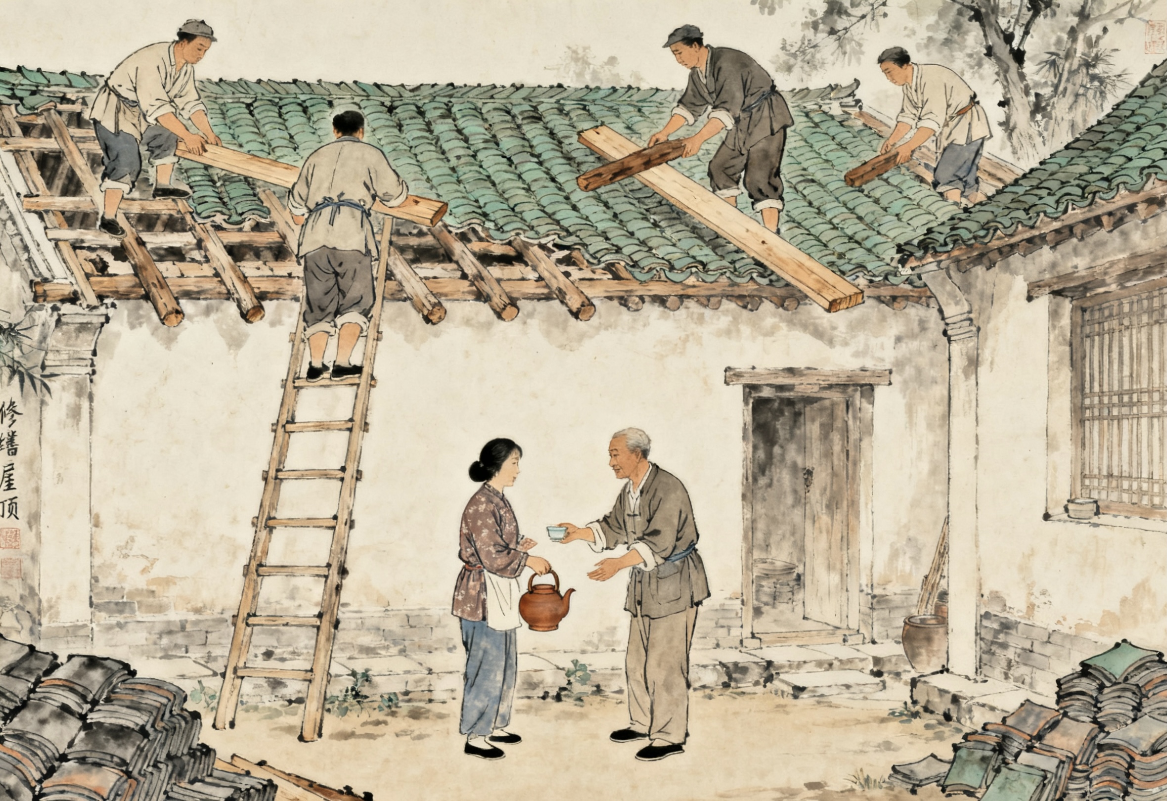 那天晚上,铁山喝着秀莲热的粥,听赵老三说修屋顶的事,心里暖得不行。他想起刚才王嬷嬷的声音,又想起王嬷嬷生前对他的好 —— 王嬷嬷走的时候,拉着他的手说:“铁山,秀莲是个好姑娘,你要好好待她,遇事别冲动,多想想,别让自己后悔。”