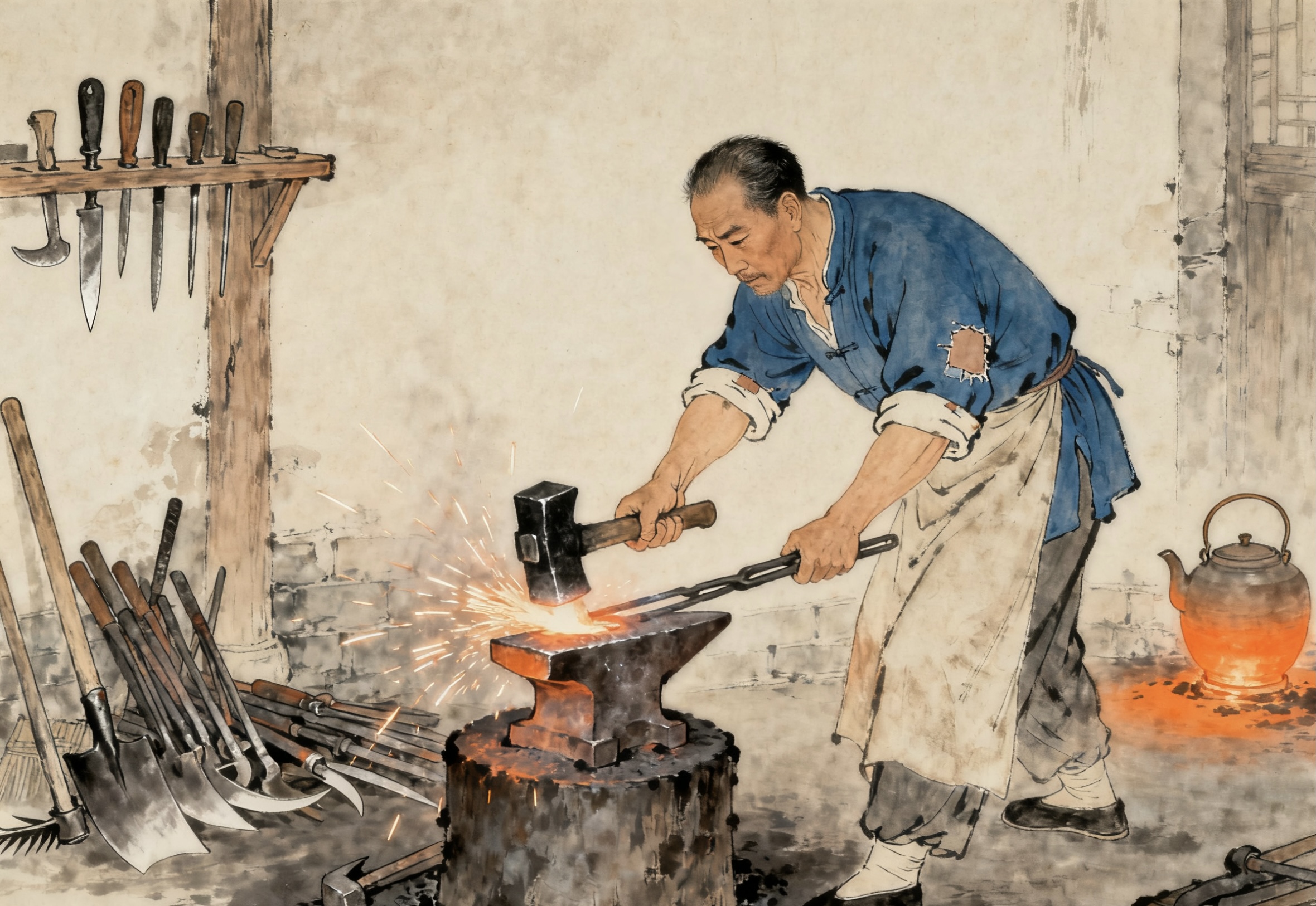 民国那阵,清风镇东头住着个铁匠,叫李铁山。这人实诚,手劲大,抡起铁锤能把铁砧子敲得 “叮当” 响,火星子溅到袖口烫出小窟窿也顾不上揉 —— 他总说:“多打把好锄头,老乡们种地能少费点劲;多修把镰刀,秋收时能多收两袋粮。”