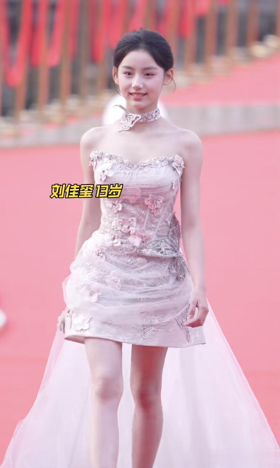 女明星走红毯是真的卷,个个礼服华丽,妆容闪亮,发型都带着气势。瞧,因《九重紫》里的小窦昭出圈的刘佳玺,一身花朵抹胸裙衬出娇俏身姿,哪里敢相信她才13岁,老天爷太给她赏面了。