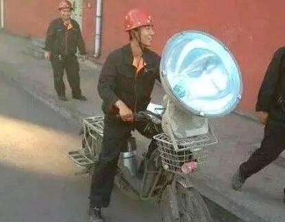 大哥,一看你就是走夜路的人啊,整这么大一灯