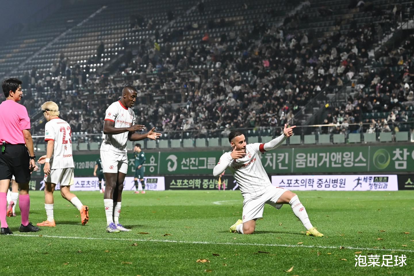 我们再看K2联赛的情况。昨晚随着全南和城南的获胜,2025赛季K2的季后赛名额争夺愈发白热化。今天结束的三场K2联赛,又诞生了一支提前锁定季后赛名额的球队,这就是富川FC1995。在下午客场与已经无缘季后赛的金浦FC交手中,富川凭借巴西中锋巴萨尼的进球,客场1-0击败对手,最终以66分提前一轮锁定K2联赛的第三名,也就是确认季后赛最终决赛的参赛名额。