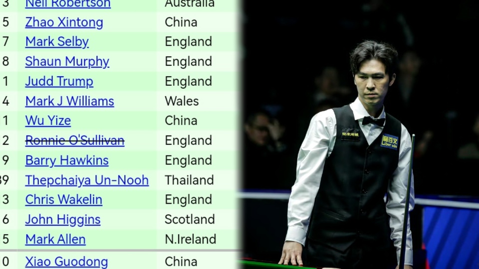 肖国栋遗憾出局,赵心童携手吴宜泽冲冠,1/4决赛或提前相遇