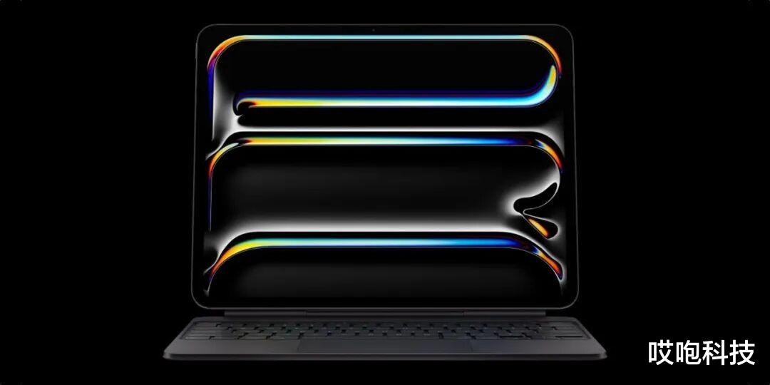 再看 iPad Pro,11 英寸和 13 英寸两种尺寸选择,满足不同用户的需求。依旧是超薄铝合金材质机身,垂直窄边框搭配全屏幕 Face ID,背面取消了 “iPad Pro” 的字样。
