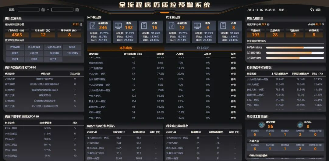 该系统响应国产化适配政策,严格遵循国家关于电子病历的书写规则要求,涵盖病历全生命周期的质控管理,运用数智化手段完成病历质控的PDCA管理全过程,从环节中减少问题病历的发生,提高医院整体病历质量。