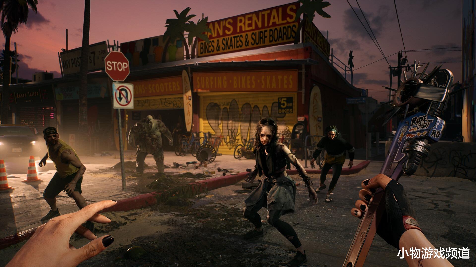地图设计巧妙融合洛杉矶地标与丧尸文化梗:在圣莫尼卡码头用旋转木马绞杀尸群,或于好莱坞大道用星光大道纪念牌拍碎明星丧尸的头颅。动态难度系统"丧尸压力表"会随玩家表现调整尸潮强度,曾在笔者连续5次完美闪避后触发Boss战——一具穿着比基尼的变异救生员从泳池破水而出。多人联机时夸张的物理效果往往衍生出意外喜剧,比如队友被轰飞的身体撞倒整排丧尸的连锁反应。