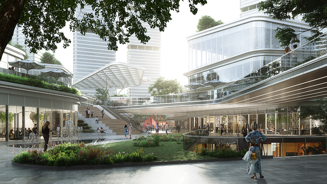 效果图:地铁口无缝衔接下沉广场 ©Farrells