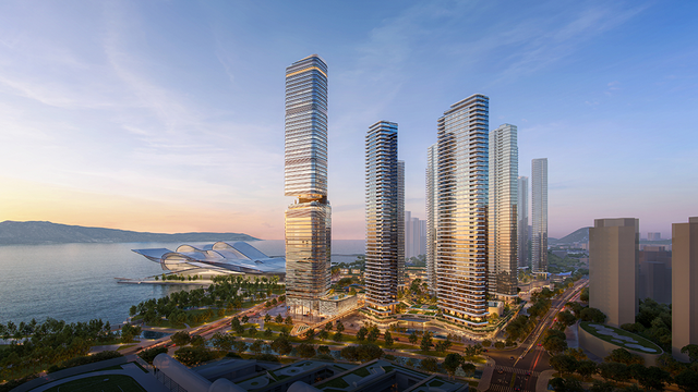 设计以“山海连城、湾区门户、艺术街区”为整体框架,试图将自然景观与人文艺术相融合。具体通过三个策略来实现:一是让高层建筑后退,留出滨海地面空间,形成小尺度商业文化街区;二是规划250米高的超塔作为地标,与周边高楼共同勾勒城市天际线;三是构建立体交通网络,连接地铁、商业与住宅,提升出行便利。