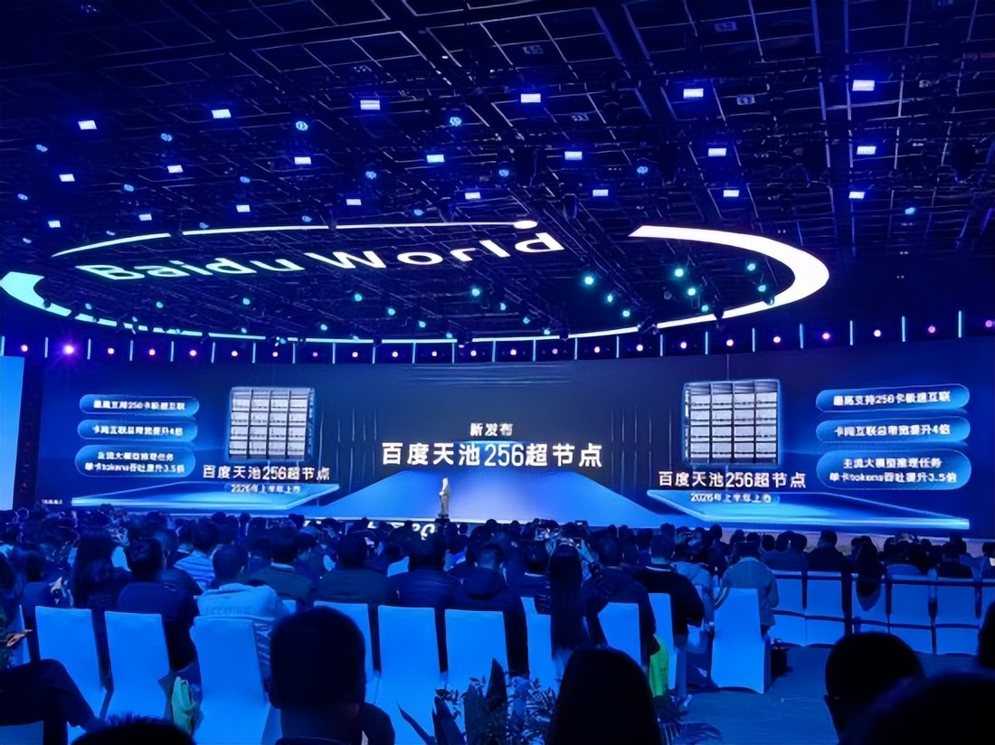 在算力层面,全新一代昆仑芯两款产品——天池256超节点与天池512超节点,将于明年正式上市。据悉,单个天池512超节点就能完成万亿参数模型训练,天池256超节点卡间互联总带宽提升4倍,主流大模型推理任务单卡tokes吞吐提升3.5倍;百度天池512超节点最高支持512卡极速互联,卡间互联总带宽提升1倍,单节点即可完成万亿参数模型训练。