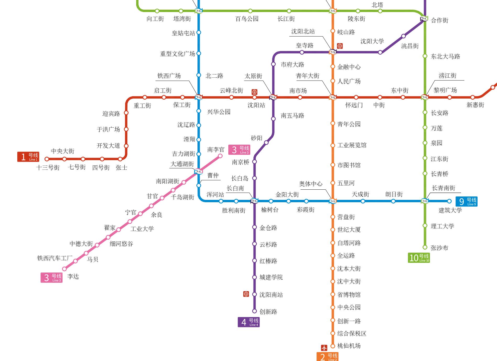 目前沈阳已经运营的地铁为:地铁1号线和2号线,以及3号线的西段,以及4号线和9号线以及10号线,形成了‘1.5横2纵2L’的格局!根据目前还要继续建设的地铁线路,3号线东段以及6号线和9号线及10号线的二期线路分别在2026年-2028年进行运营,给城市带来了地铁的便捷!