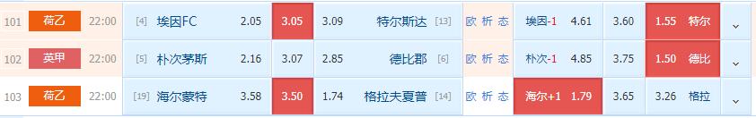 综合分析:从两队整体实力来说埃因霍温FC还是要更胜一筹。而近期两队的状态都只算中规中矩,两队历史交锋基本也是平分秋色,虽然埃因霍温FC是主场,但特尔斯达的客场也并不弱,而且是不败能力极强的平局大师。综合下来,本场不妨大胆猜测双方平局收场。