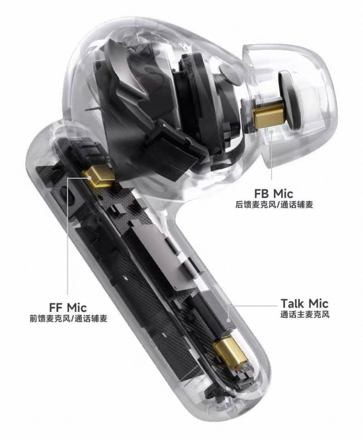 得益于耳机内置多个高精度麦克风,它们能够实时捕捉环境噪音,并将信号快速传递至内置的降噪芯片。经过精密计算后生成与噪音相对应的抵消声波,从而实现对杂音的有效消除。