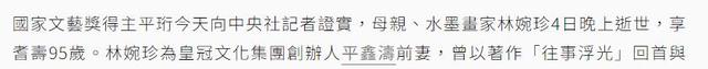 日前,台媒报道传来一则令人唏嘘的消息:水墨画家林婉珍于4日晚离世,享年95岁。