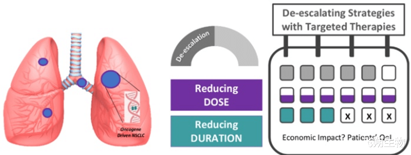图1. 靶向治疗降级策略旨在通过减少剂量或缩短疗程,改善经济影响和患者生活质量(QoL)