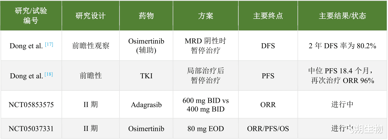 目前,关于靶向治疗降级策略的研究正在全球范围内展开。下表总结了部分已完成和正在进行的重点临床试验。