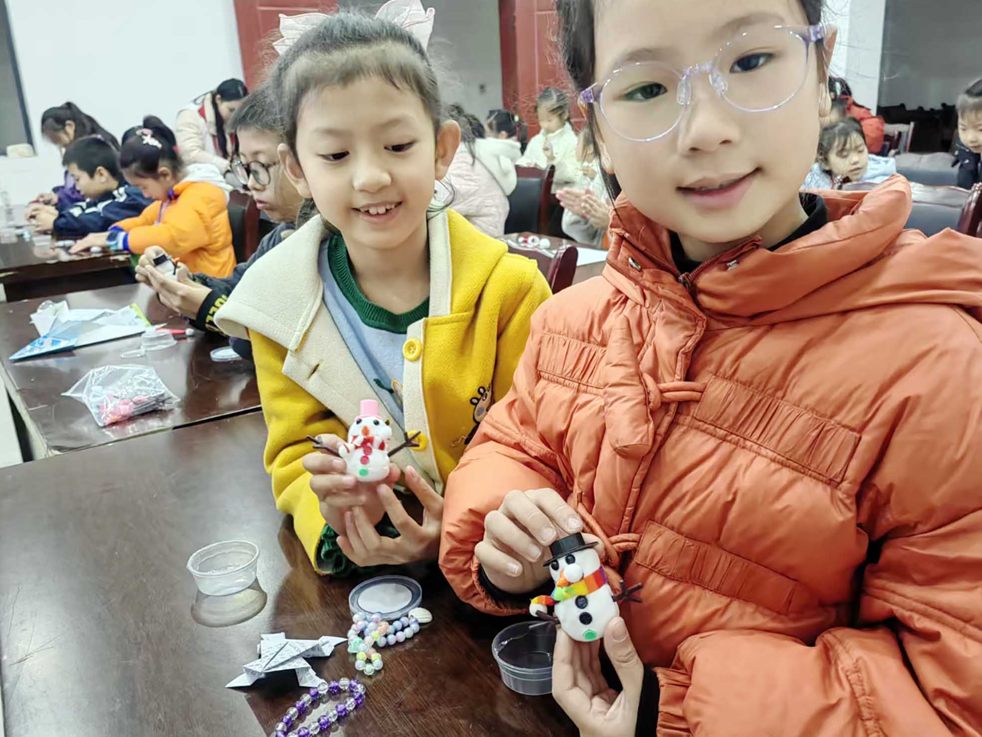 最受孩子们欢迎的当属黏土雪人制作环节。志愿者详细演示了揉、搓、压、粘等基础手法,指导孩子们将黏土分成大小块,分别制作雪人的头部和身体等。小朋友们充分发挥想象力,有的给雪人配上圆圆的大眼睛,有的为雪人设计彩色围巾,还有的创意搭配装饰元素,原本普通的黏土在孩子们手中变成了一个个形态可爱、独具个性的雪人作品。大家互相展示、分享创作思路,活动室里充满了童真童趣与温暖氛围。
