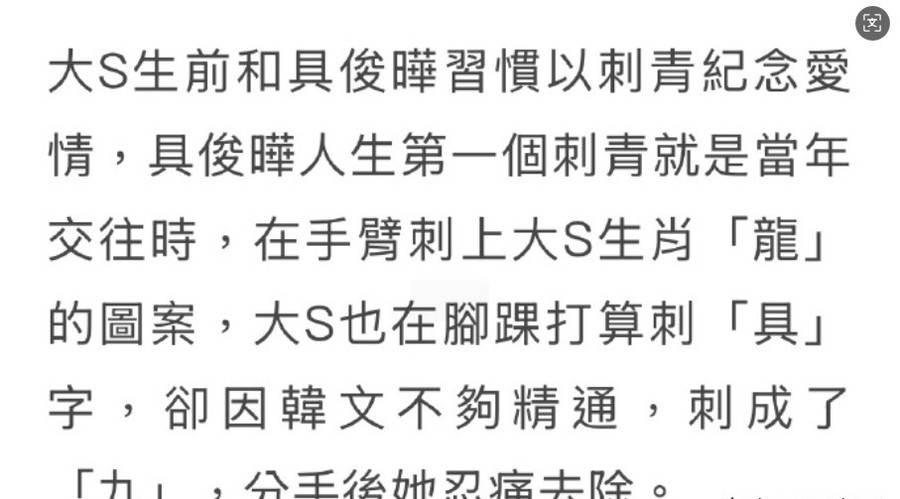 先说说台媒的“浪漫叙事”。按照报道,大S和具俊晔结婚三年,最爱的情趣就是宅在家里互相刺青,你扎我一针,我画你一笔,连刺青机器都是具俊晔“宠妻无极限”的证明。更绝的是,两人身上刺满了“爱的印记”:大S的星座、韩文名、结婚纪念日,甚至台湾的经纬度坐标都刻在具俊晔手臂上,说是“一辈子不离开”。台媒还夸具俊晔深情,大S去世后他不仅保留所有刺青,连那台刺青机器都成了“最后的遗物”,甚至要把大S在台北的生活痕迹原封不动搬到韩国……
