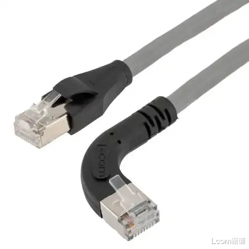 L-com 以太网超六类10gig直角弯头线缆组件,F/UTP屏蔽,26AWG,RJ45直头/右弯头,低烟无卤外被,灰色