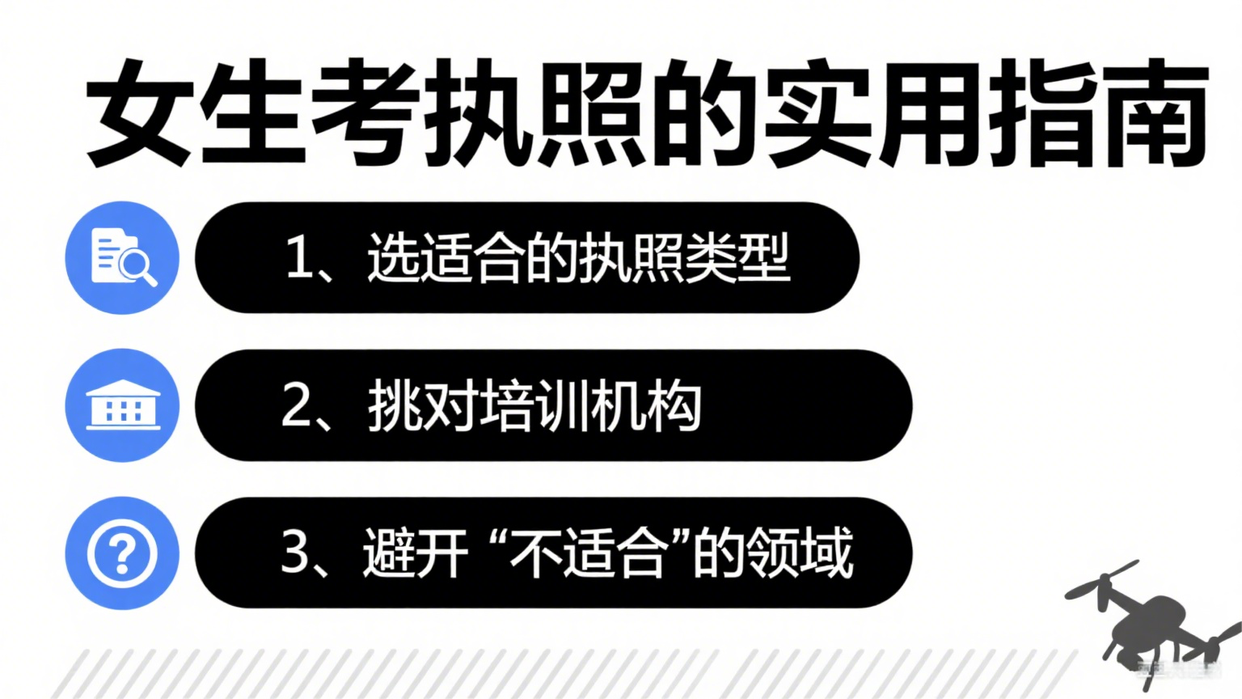 结语:从航拍圈的 “细节控” 到农业界的 “女飞手”,女生在无人机领域的优势正被越来越多人看见。如果你是女生,也想进入这个高薪行业,不妨先考一本 CAAC 执照 —— 细腻、耐心、沟通力,这些属于女生的特质,恰恰是成为优秀飞手的关键!