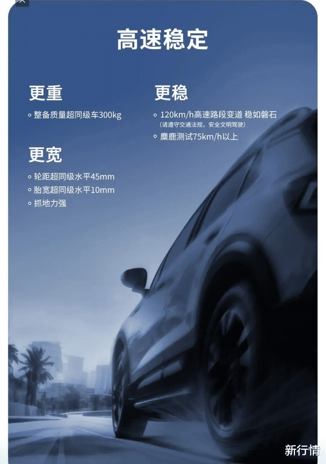 此外,该款车整备质量超同级车型300kg,轮距宽于行业45mm、胎宽多出10mm,麋鹿测试成绩超75km/h,均超过同级车辆水平。