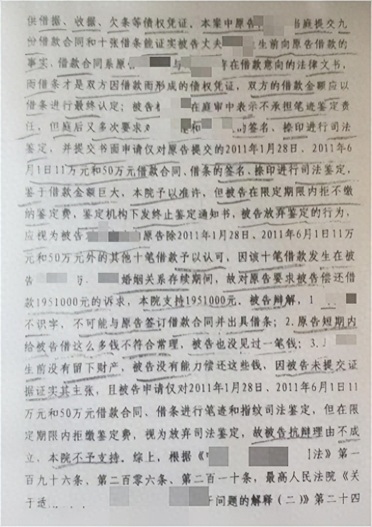 争议焦点二则围绕文盲签署借款凭证的合理性展开。一审中,杨某莲对借条上的签名真实性提出异议,并就其中两笔合计 61 万元借款的借条和合同申请笔迹鉴定。值得关注的是,在其提出鉴定申请后,何某军随即撤回了包含该两笔借款在内的 4 笔合计 61 万元的诉讼请求。而对于其余借款凭证,在杨某莲持续质疑且无相关鉴定结论支持的情况下,法院最终采信了借条作为定案的主要依据。