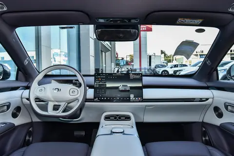 侧面造型没有生硬腰线,以1.28的宽高比和3.0的轮轴比呈现出一种协调和舒展的比例美。前脸的横向线条勾勒出招牌“微笑”形态,2258mm长的无断点贯穿式大灯内含236颗LED灯珠,亮度比普通大灯提升了21%,宽度提升27%,夜间照明更加广阔且均匀。矩阵尾灯环绕LOGO布局,共有274颗灯珠,辨识度极高,还支持自定义灯语和迎宾流水灯光效果,科技感满满。我开过街上,回头率确实不低。外观设计既不会显得极端激进,也不会过于保守,既适合年轻人,也符合中年家庭的审美,放小区或公司停车场很有面子。