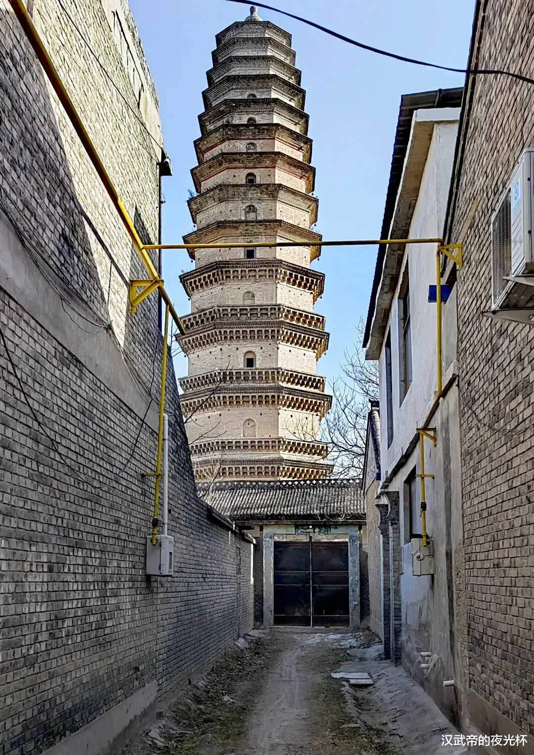 运城盐湖的晨光里,太平兴国寺塔的八角飞檐已矗立了十四个世纪。当地人更愿称它 "南海观音塔",清乾隆《安邑县志》记载的奇事在街头巷尾流传:"明嘉靖乙卯年地震,塔自顶裂至七层,缝宽尺许;万历间复震,缝竟自合"。这座隋代始建的舍利塔,北宋定名后历经十余次大地震,从89米残至71米,却始终笔直如削,2013年跻身全国重点文保单位名录时,砖缝里还嵌着民国三十一年的维修碣石。