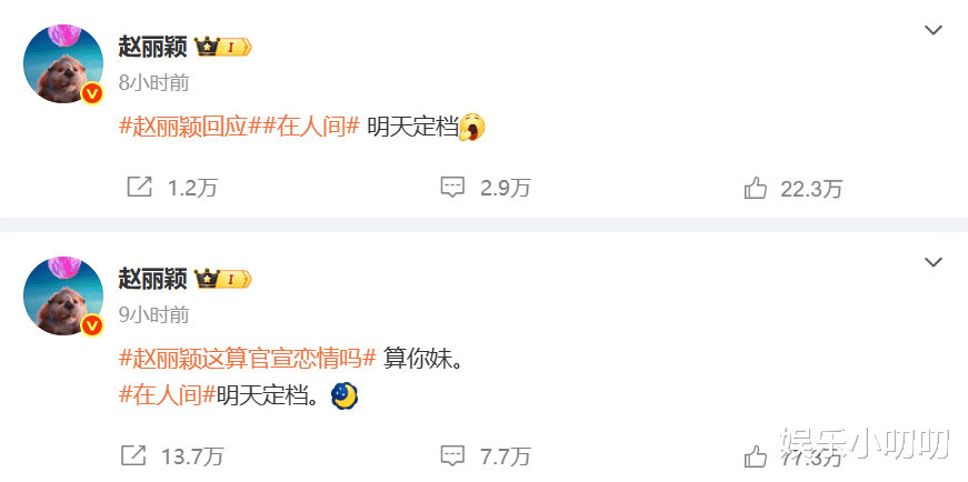 5月22日,赵丽颖因自己新剧《在人间》即将上映在个人社交平台对该剧进行宣传,然而令人没想到的是赵丽颖竟然自己挂上了#赵丽