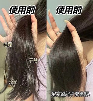 整体表现还行,涂抹后头发光泽感明显,毛躁减少。技术上依靠深层渗透精油和毛鳞片封闭,让滋养渗入发芯,同时形成轻盈保护层锁水。好处是梳头顺手,碎发少,触感轻盈;缺点是湿发涂抹时滋润感稍弱,干发涂多了偶尔有假滑感,顺滑效果不够持久,隔天发尾略干。