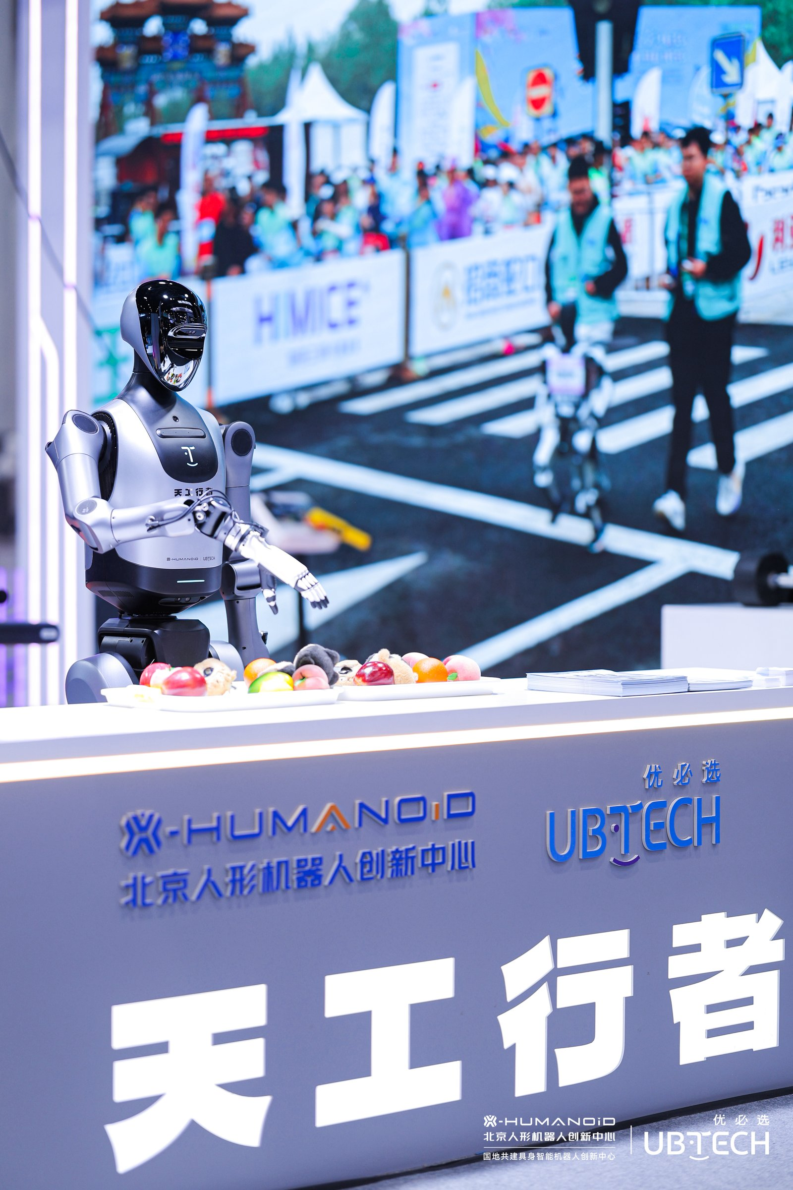 在展区,优必选携北京人形机器人创新中心(简称“创新中心”)联合展出具身天工、慧思开物、天工行者等重磅产品,全方位呈现全尺寸人形机器人前沿技术、创新成果及开发者生态。