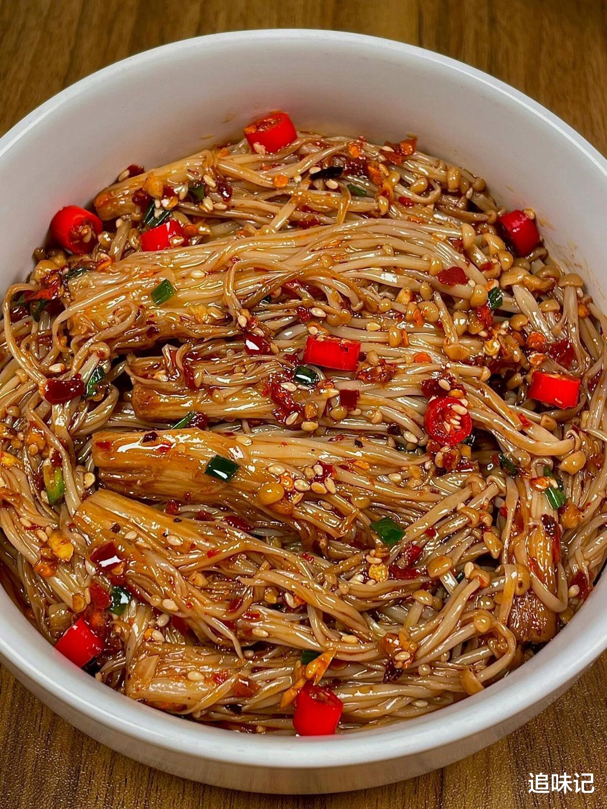 香辣金针菇金针菇煎得金黄,裹着香辣的酱汁,辣味十足,烧烤粉的香味和小米辣的辛辣完美结合,超级下饭。