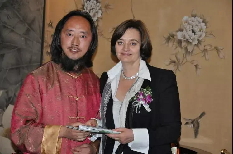 刘绥滨与英国前首相夫人切丽布莱尔互赠礼品